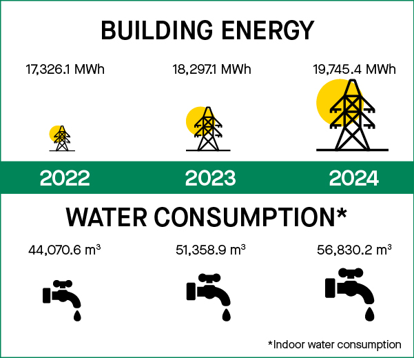These measures are implemented throughout the group and form part of the standards followed in all our premises. We apply environmental criteria and energy efficiency measures when designing or renovating our premises, including the purchase of office equipment, as well as in the procurement process and in the selection of suppliers in general. We also invest in technologies that use renewable energy sources and other state-of-the-art measures; in some of our premises we have even achieved passive levels of energy consumption.