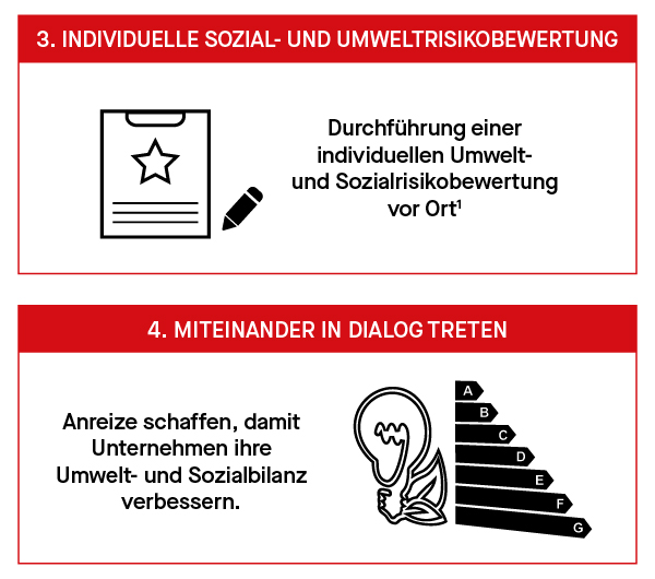 - Bewertung und Einschätzung des ökologischen und sozialen Risikos aller unserer Geschäftskund*innen